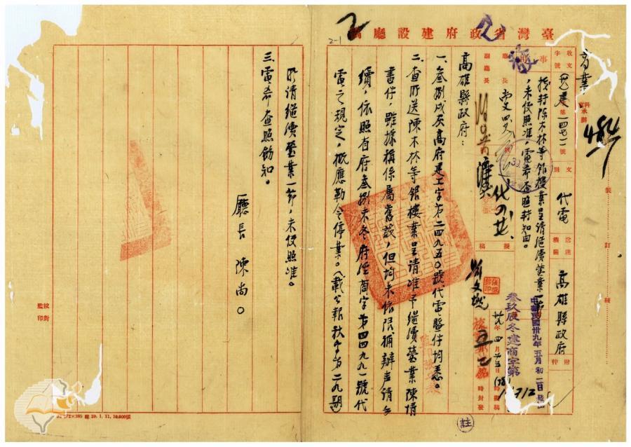 主要發文者:台灣省政府建設廳
