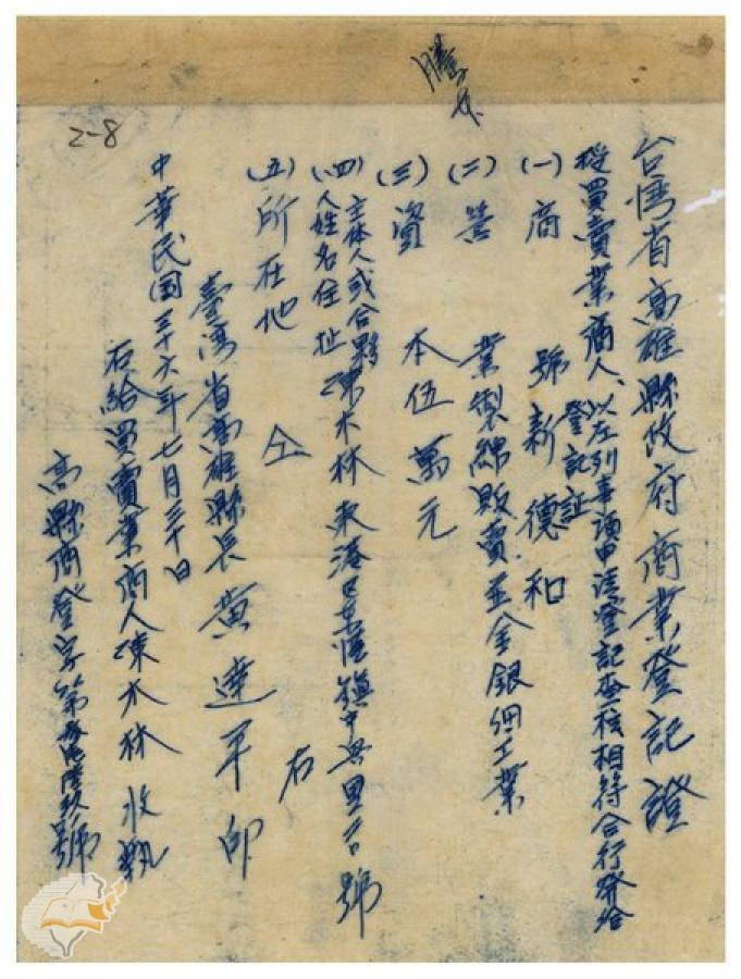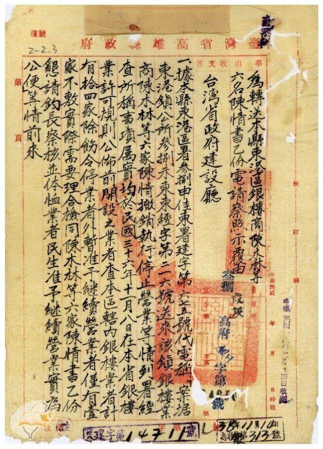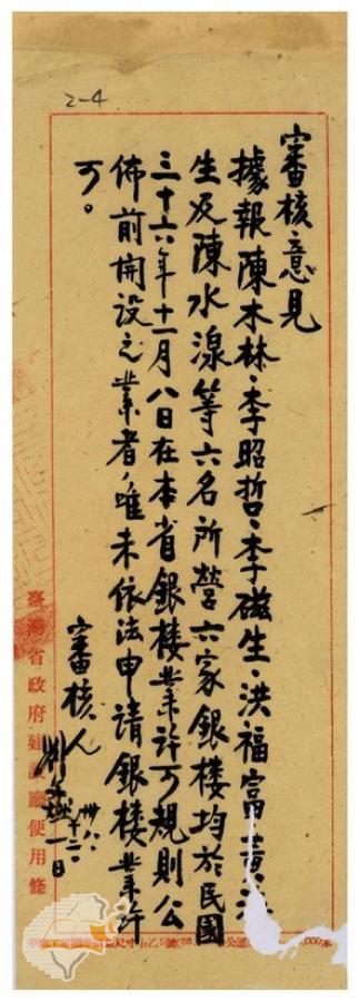 台灣省政府建設廳(1950-05-02)。[案由:據轉陳木林等銀樓業呈請繼續營業一節未便照准電希查照轉知由]。《數位典藏與數位學習聯合目錄》。http://catalog.digitalarchives.tw/item/00/42/22/ce.html(2025/01/03瀏覽)。