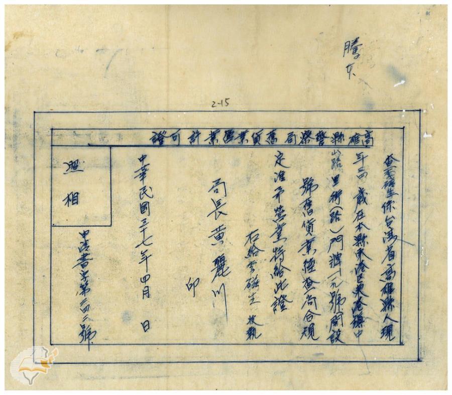 案由:據轉張文堂補辦銀樓申請手續一節...