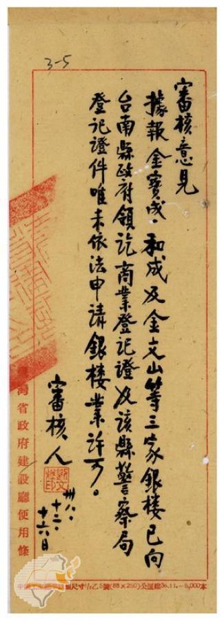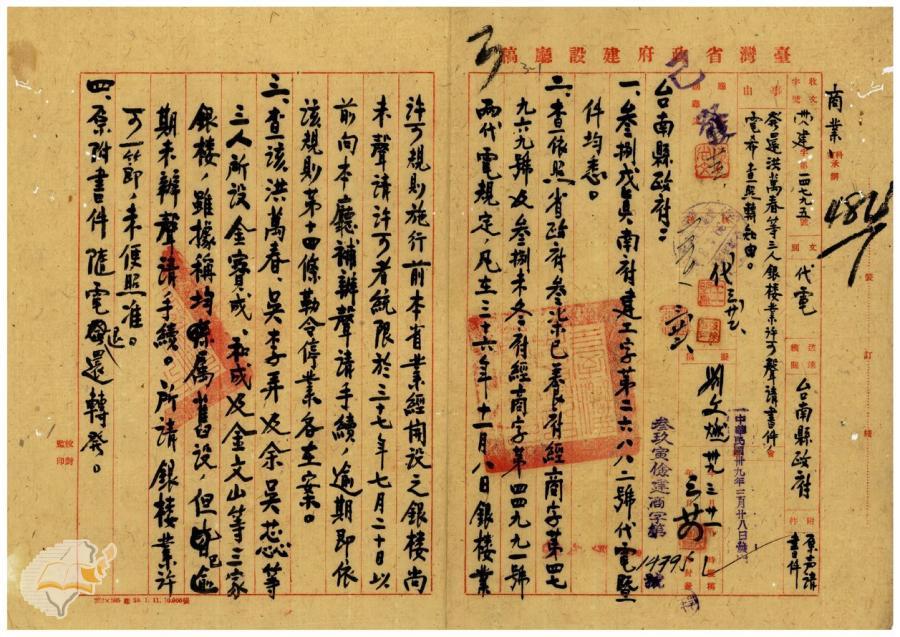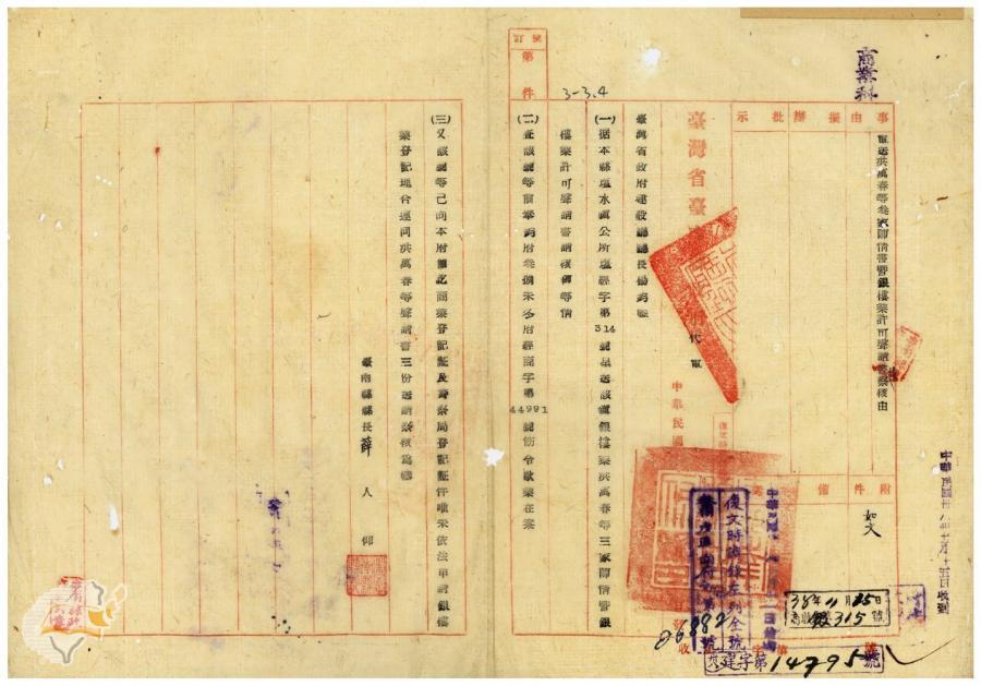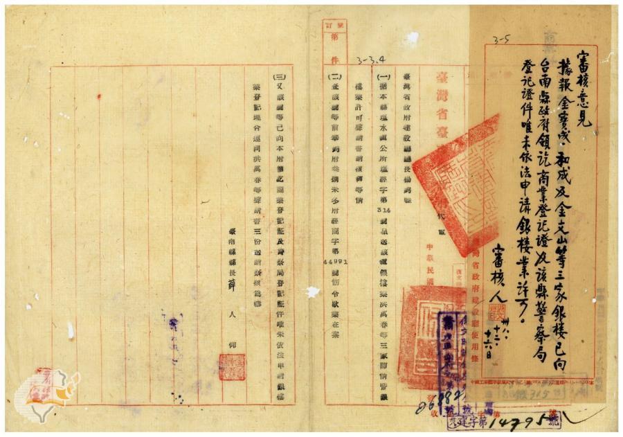 台灣省政府建設廳(1950-03-28)。[案由:發還洪萬春等三人銀樓業許可聲請書件電希查照轉知由]。《數位典藏與數位學習聯合目錄》。http://catalog.digitalarchives.tw/item/00/42/22/cf.html(2025/01/03瀏覽)。