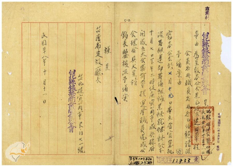台灣省政府建設廳(1950-05-20)。[案由:據呈報台北縣銀樓商業同業公會成立日期等情批示知照由]。《數位典藏與數位學習聯合目錄》。http://catalog.digitalarchives.tw/item/00/42/22/d1.html(2025/01/03瀏覽)。