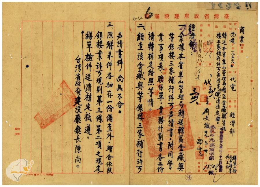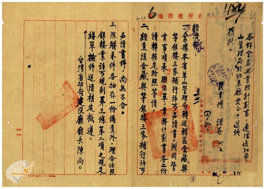 台灣省政府建設廳(1950-04-13)。[案由:轉送台灣省草山管理局轄區金藏興等銀樓三家補行許可聲請書件請核定由]。《數位典藏與數位學習聯合目錄》。http://catalog.digitalarchives.tw/item/00/42/22/d2.html(2025/01/03瀏覽)。