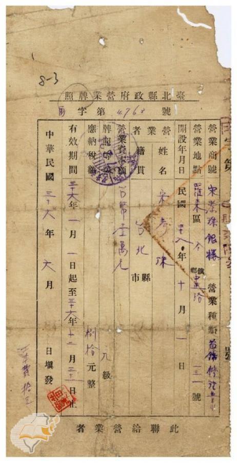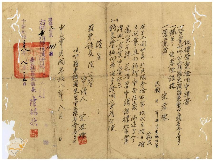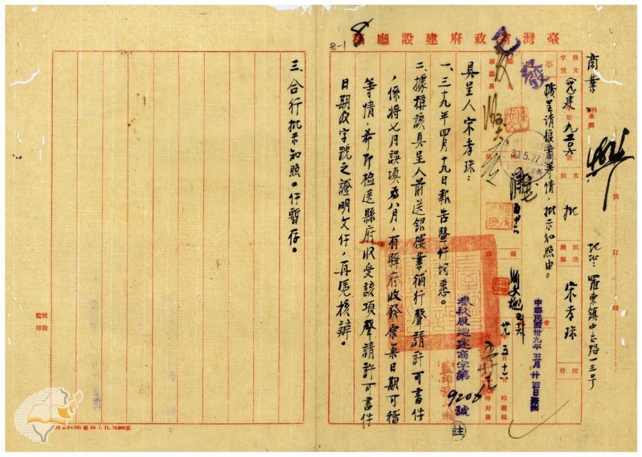 台灣省政府建設廳(1950-05-24)。[案由:據宋孝珠呈請復業等情批示知照由]。《數位典藏與數位學習聯合目錄》。http://catalog.digitalarchives.tw/item/00/42/22/d4.html(2025/01/03瀏覽)。