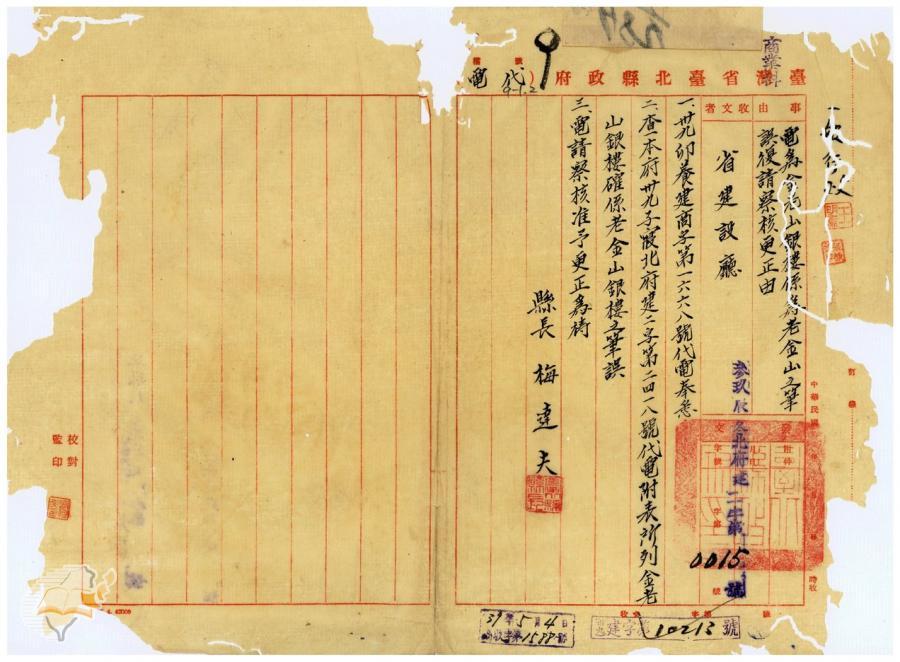 台北縣政府(1950-05-11)。[案由:電為金老山銀樓係為老金山之筆誤復請察核更正由]。《數位典藏與數位學習聯合目錄》。http://catalog.digitalarchives.tw/item/00/42/22/d5.html(2025/01/03瀏覽)。
