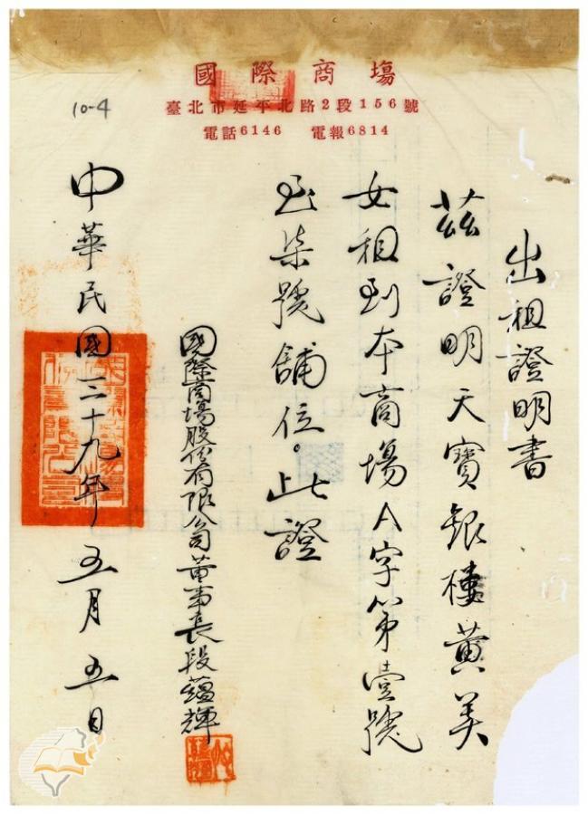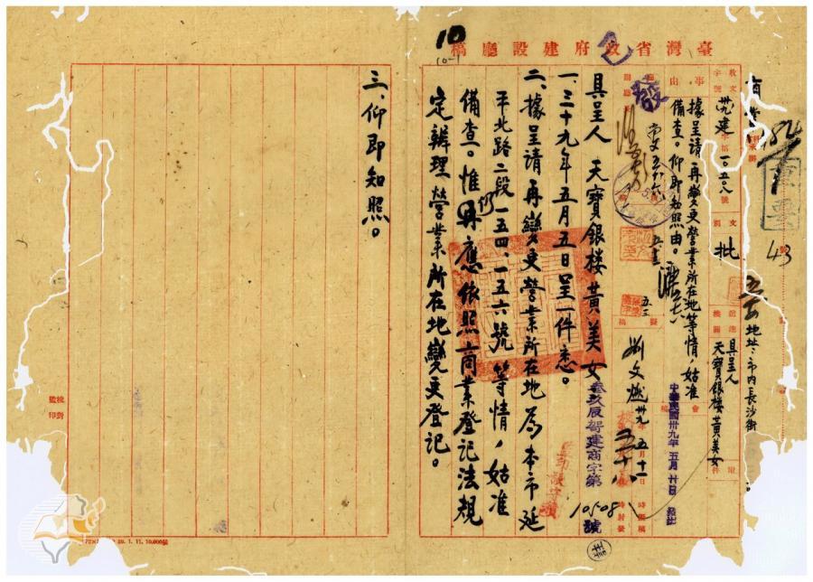 台灣省政府建設廳(1950-05-20)。[案由:據天寶銀樓黃美女呈請再變更營業所在地等情姑准備查仰即知照由]。《數位典藏與數位學習聯合目錄》。http://catalog.digitalarchives.tw/item/00/42/22/d6.html(2025/01/03瀏覽)。