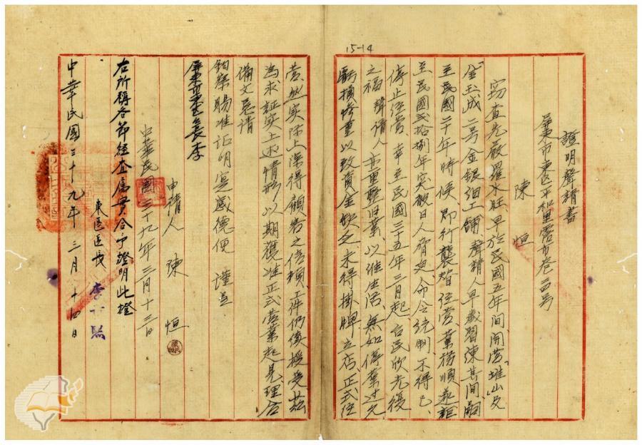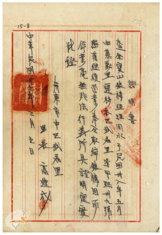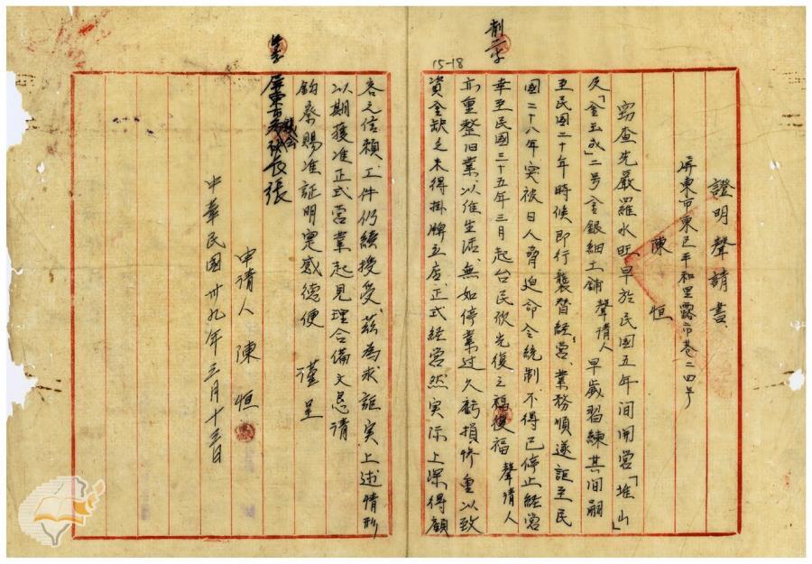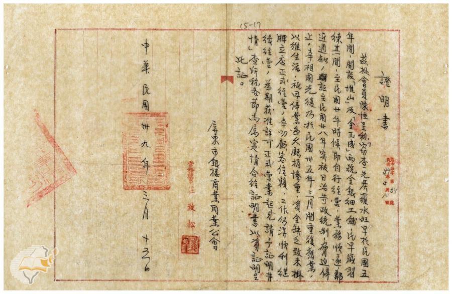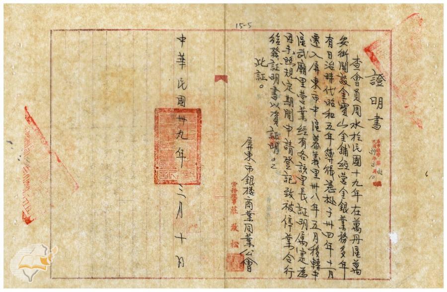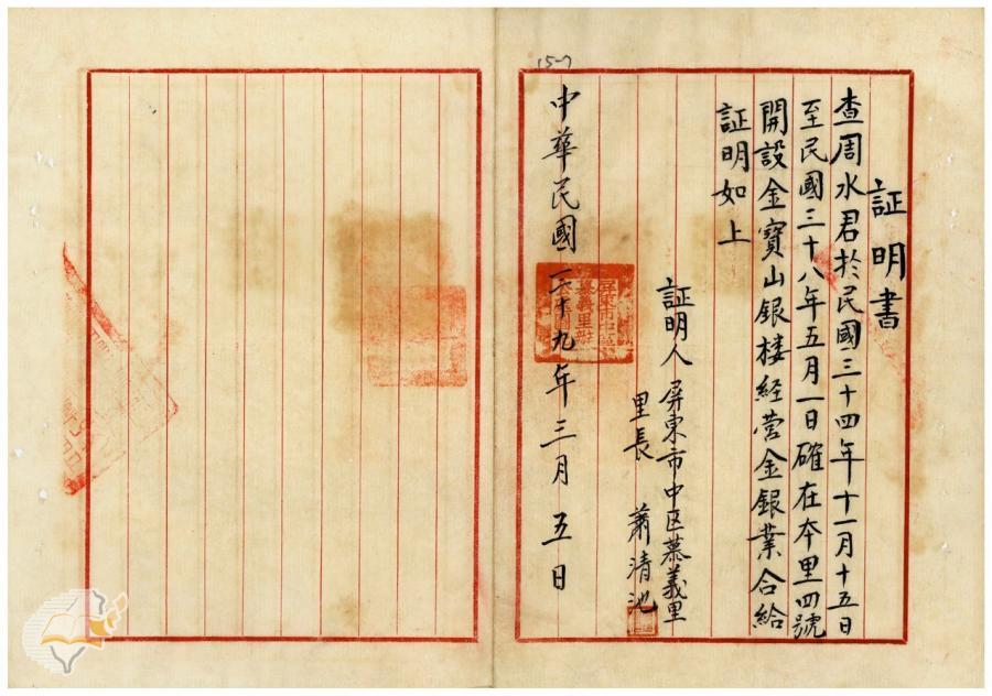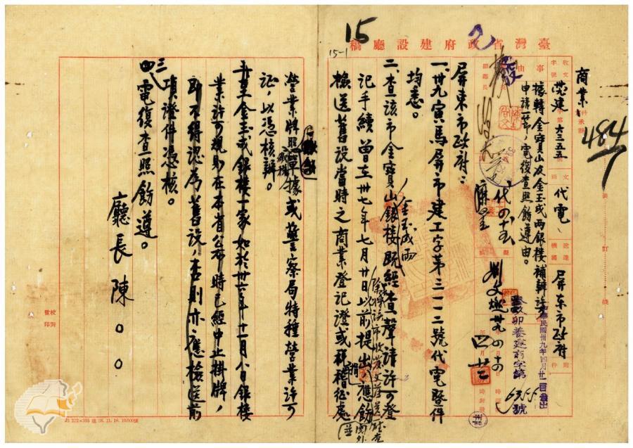 台灣省政府建設廳(1950-04-22)。[案由:據轉金寶山及金玉成兩銀樓補辦許可申請一節電復查照飭遵由]。《數位典藏與數位學習聯合目錄》。http://catalog.digitalarchives.tw/item/00/42/22/db.html(2025/01/03瀏覽)。