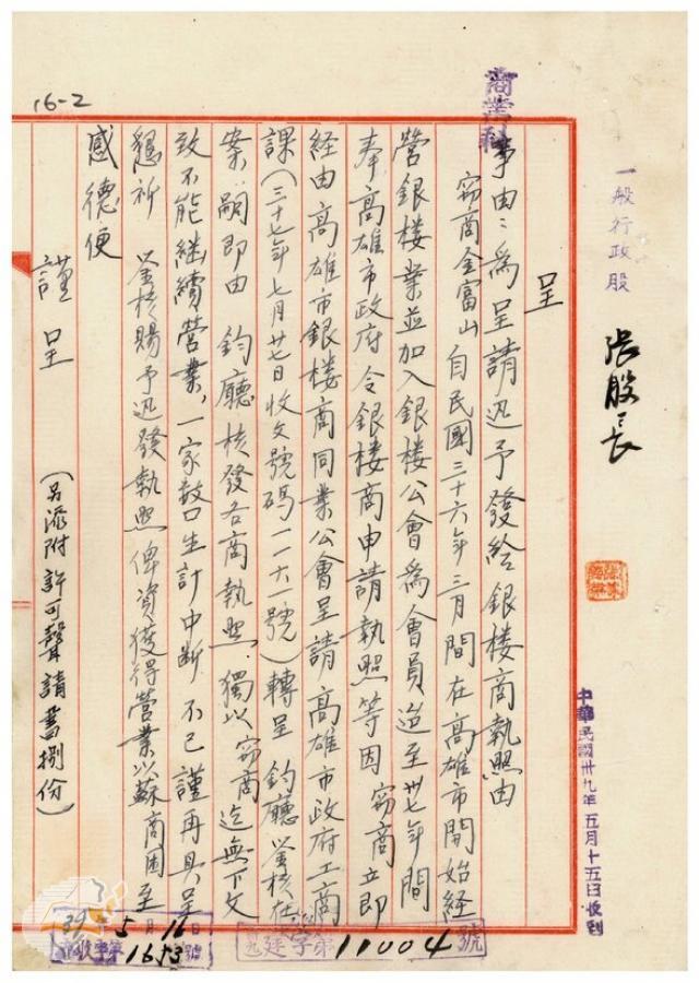 案由:據金昌明銀樓高鴻程呈請遷移營業...