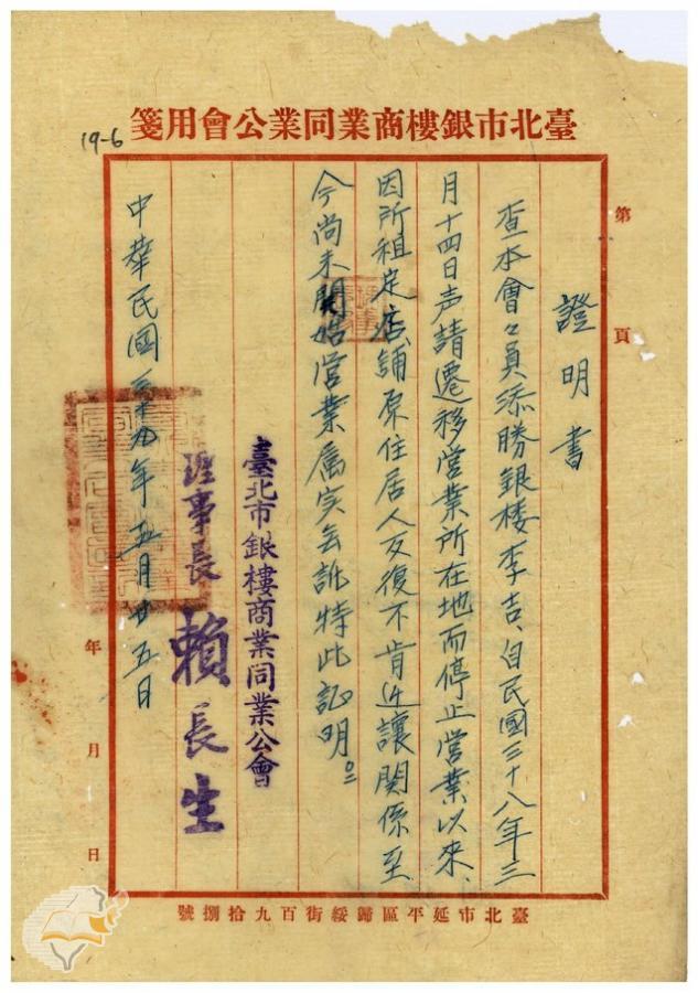 台灣省政府建設廳(1950-06-10)。[案由:據轉呈會員李吉所設添勝銀樓變更營業所在地及經理人案情批示知照轉知由]。《數位典藏與數位學習聯合目錄》。http://catalog.digitalarchives.tw/item/00/42/22/df.html(2025/01/03瀏覽)。