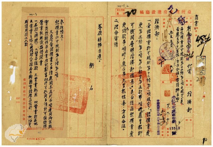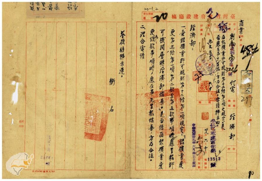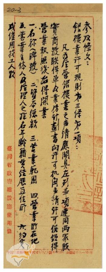 台灣省政府建設廳(1950-06-14)。[案由:為銀樓業許可規則第十二條第一項之規定是否應在事先呈報方為合法電請釋示由]。《數位典藏與數位學習聯合目錄》。http://catalog.digitalarchives.tw/item/00/42/22/e0.html(2025/01/03瀏覽)。