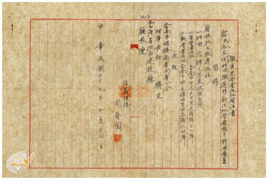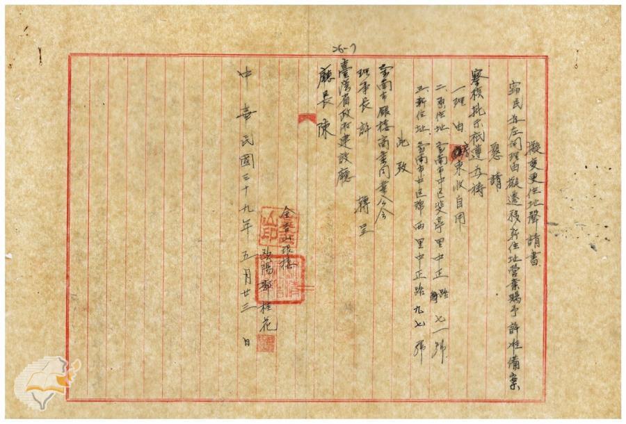 台南市銀樓商業同業公會(1950-05-18)。[案由:呈請會員周蔡閱信義銀樓擬變更營業住址賜予許准備案察核示遵由]。《數位典藏與數位學習聯合目錄》。http://catalog.digitalarchives.tw/item/00/42/22/e6.html(2025/01/03瀏覽)。