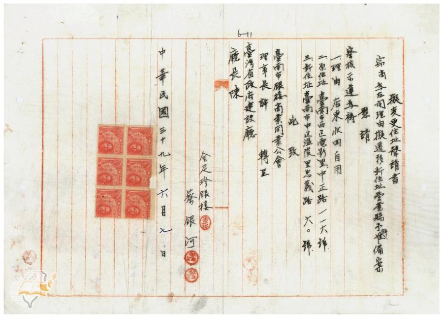 台灣省政府建設廳(1950-06-22)。[案由:台南市銀樓商業同業公會轉送會員金寶珍等四家銀樓變更營業所在地批示遵辦轉知由]。《數位典藏與數位學習聯合目錄》。http://catalog.digitalarchives.tw/item/00/42/22/ec.html(2025/01/03瀏覽)。