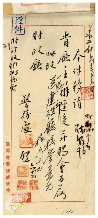 主要來文者:台灣省政府財政廳