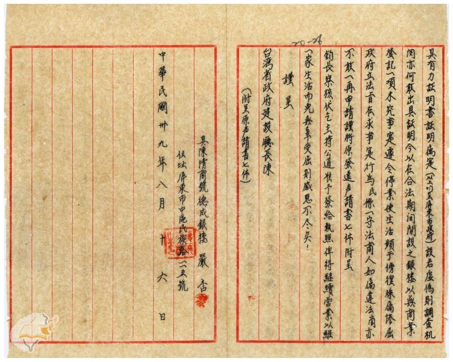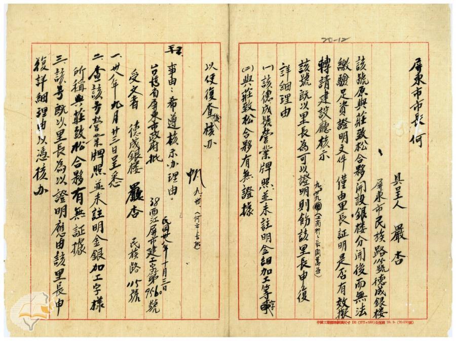 台灣省政府建設廳(1950-11-13)。[案由:據嚴德興呈請准予德成銀樓營業等情批示知照由]。《數位典藏與數位學習聯合目錄》。http://catalog.digitalarchives.tw/item/00/42/23/ac.html(2025/01/03瀏覽)。