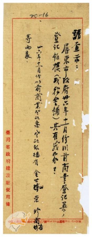 主要發文者:台灣省政府建設廳