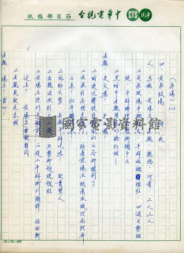摘要或大綱:張永祥原始手稿╱人物表╱以中華電視台 節目部稿紙書寫