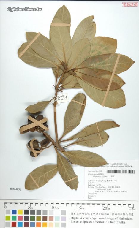 作者不詳(年代不詳)。[中文種名:海桐]。《數位典藏與數位學習聯合目錄》。http://catalog.digitalarchives.tw/item/00/45/45/cc.html(2013/03/07瀏覽)。