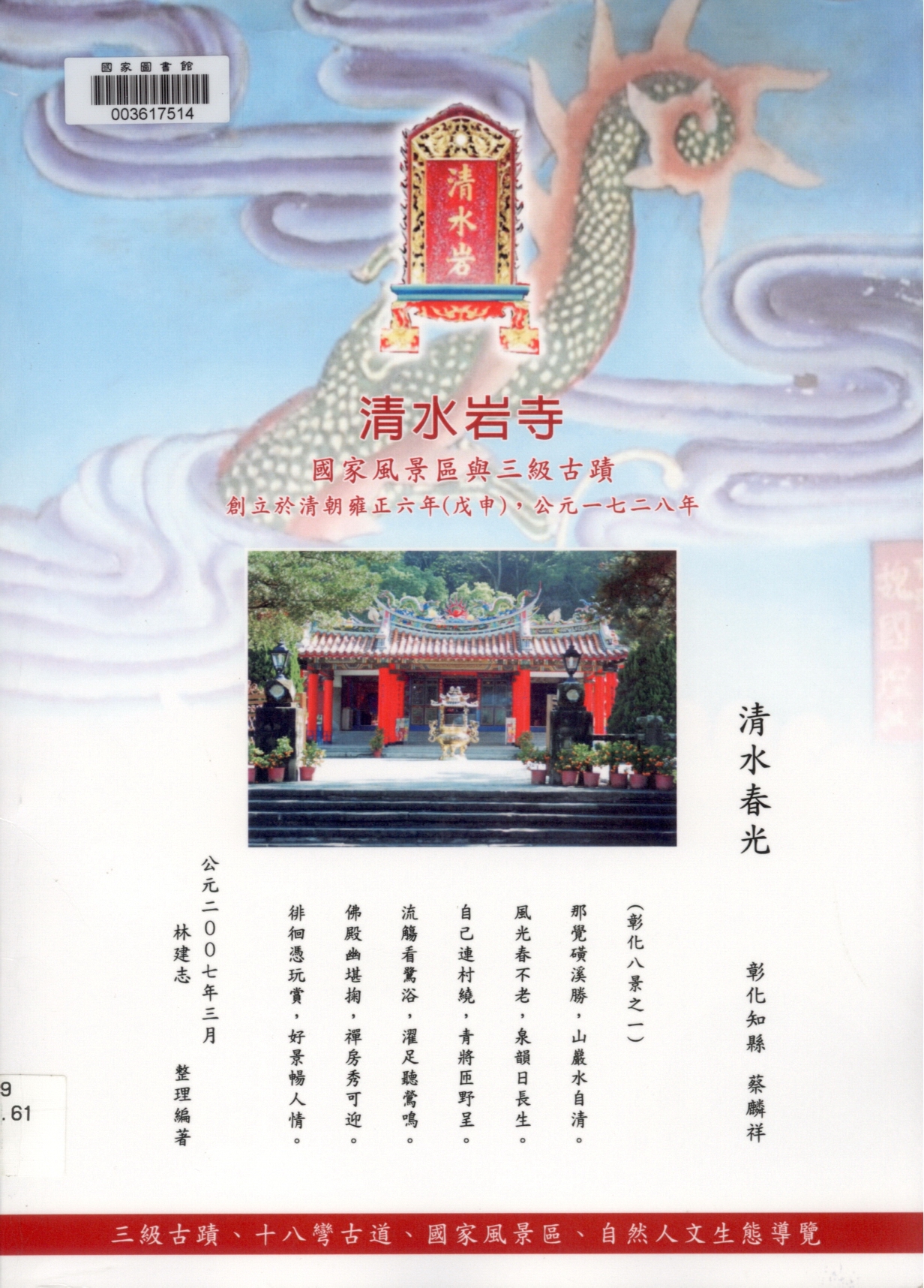 出自:清水岩寺朔源調查:國家風景區與三級古蹟古蹟