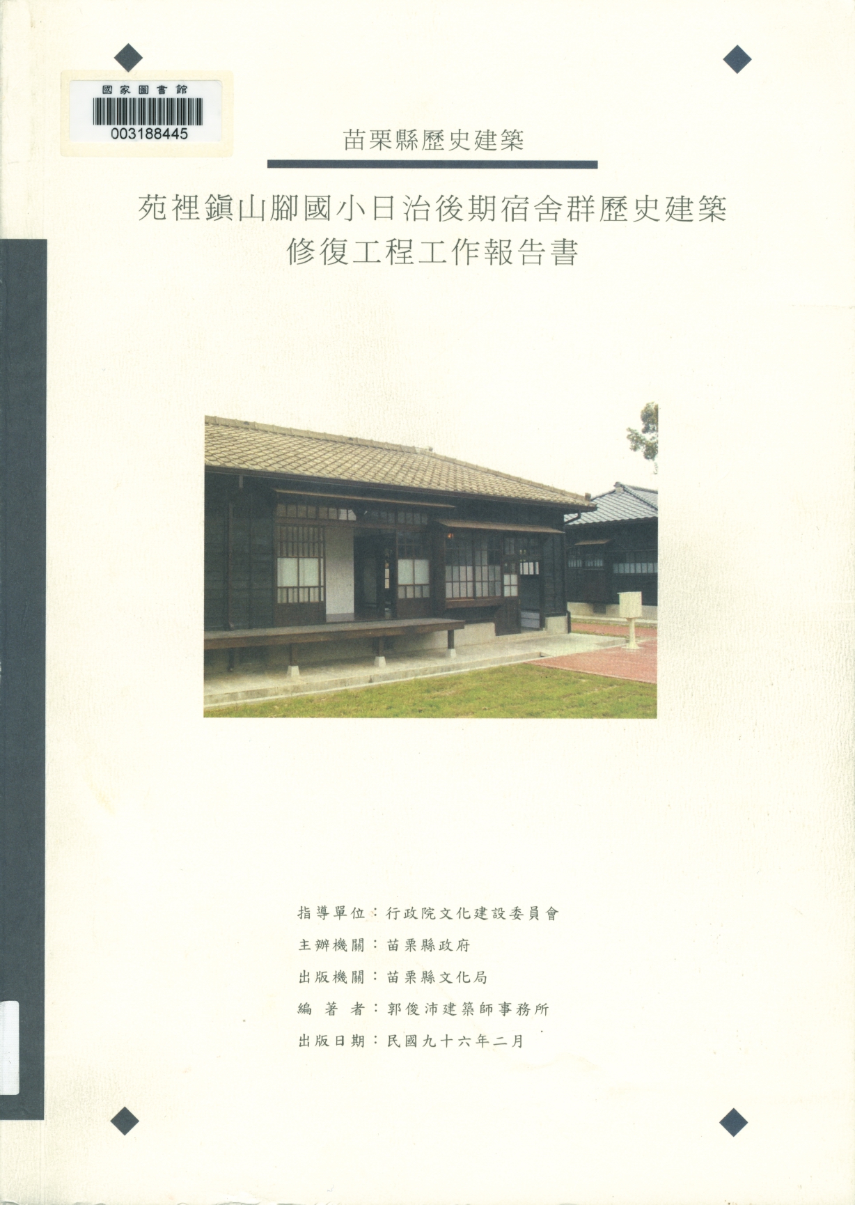 出自:苗栗縣歷史建築:苑裡鎮山腳國小日治後期宿舍群歷史建築修復工程工作報告書
