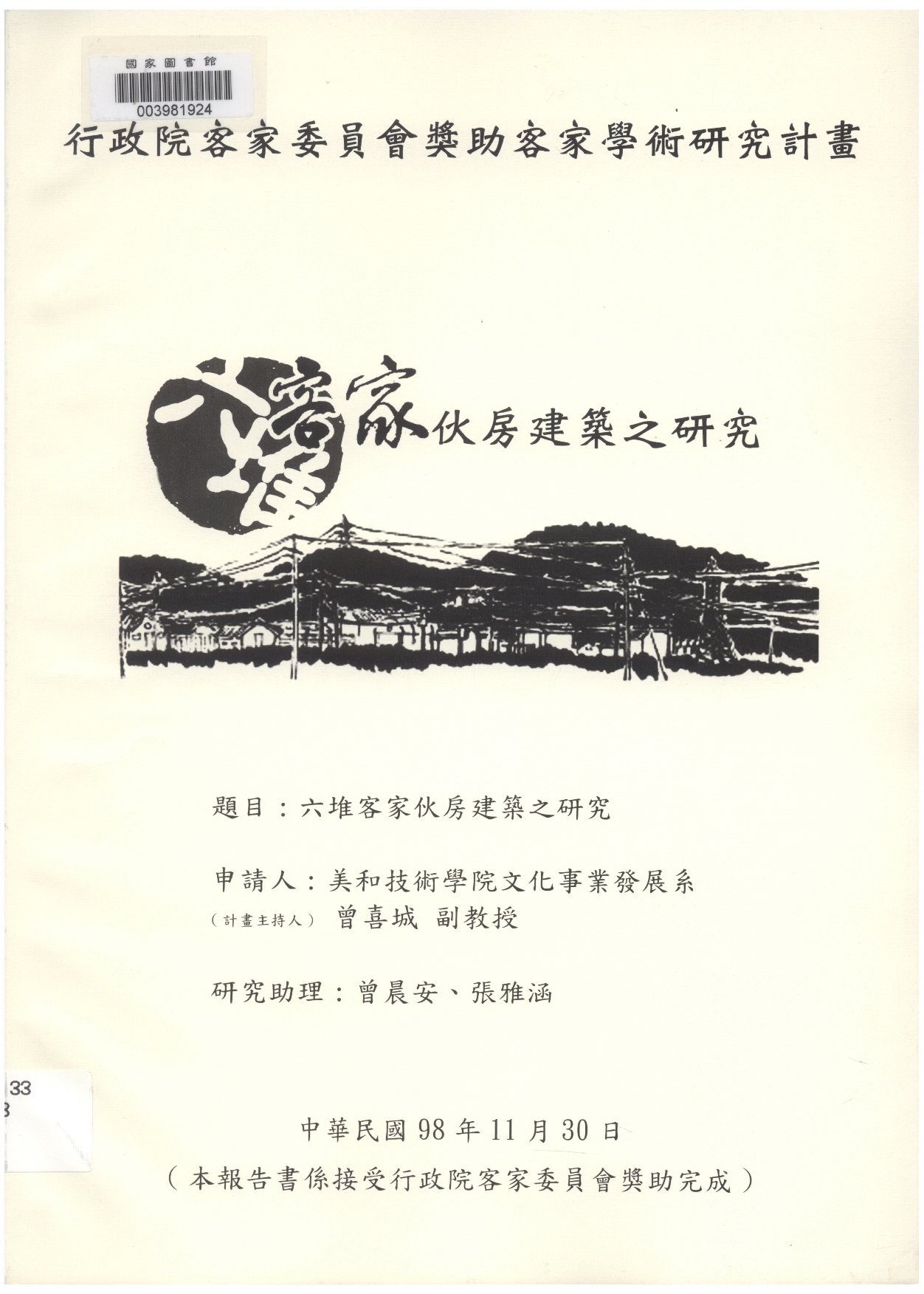 計畫主持(2009-11)。[第四節 六堆客家伙房建築的活化利用]。《數位典藏與數位學習聯合目錄》。http://catalog.digitalarchives.tw/item/00/5c/a8/4c.html(2025/01/17瀏覽)。