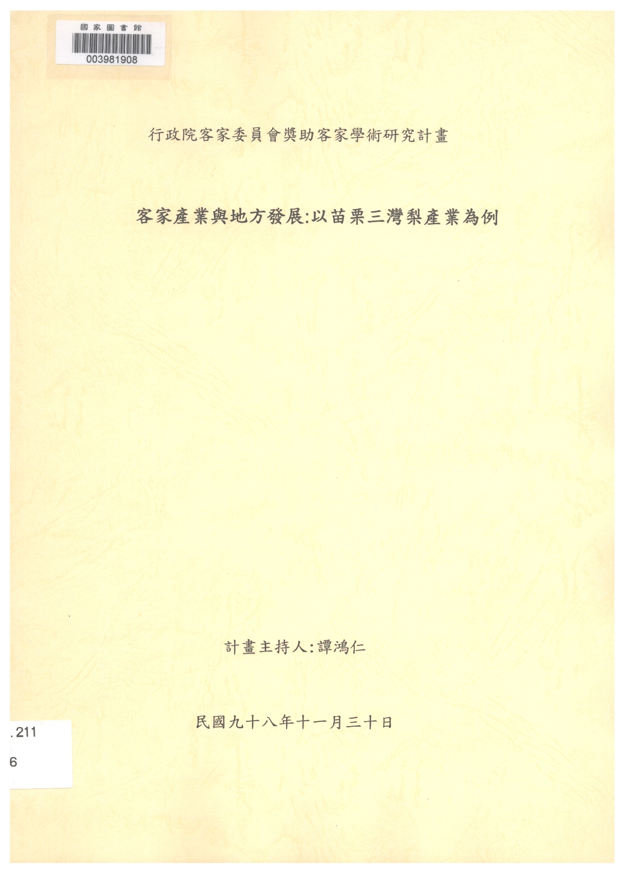 名稱:譚鴻仁 著作方式:計畫主持