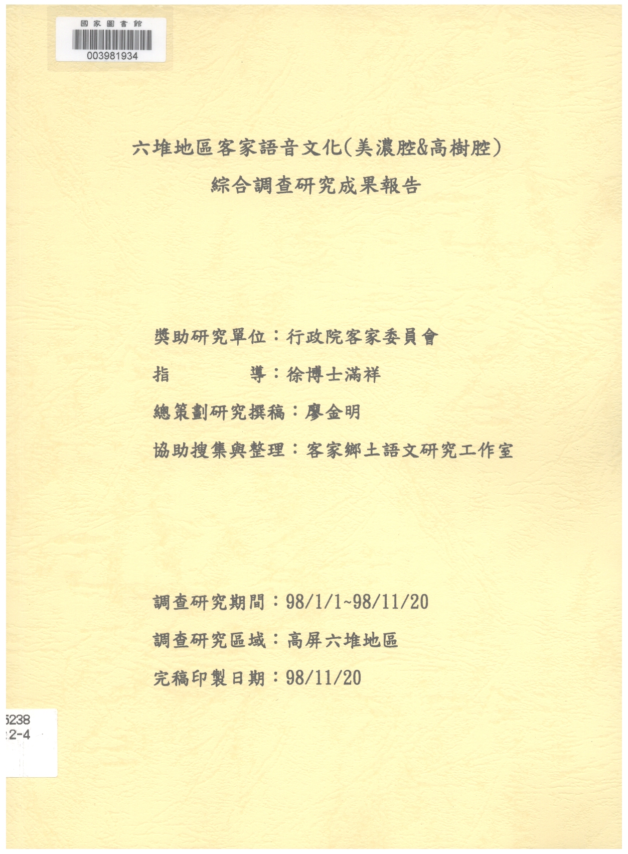 總策劃研究撰稿(2009-11)。[肆、客語四縣腔白話文研究運用篇]。《數位典藏與數位學習聯合目錄》。http://catalog.digitalarchives.tw/item/00/5c/ca/1f.html(2025/01/17瀏覽)。