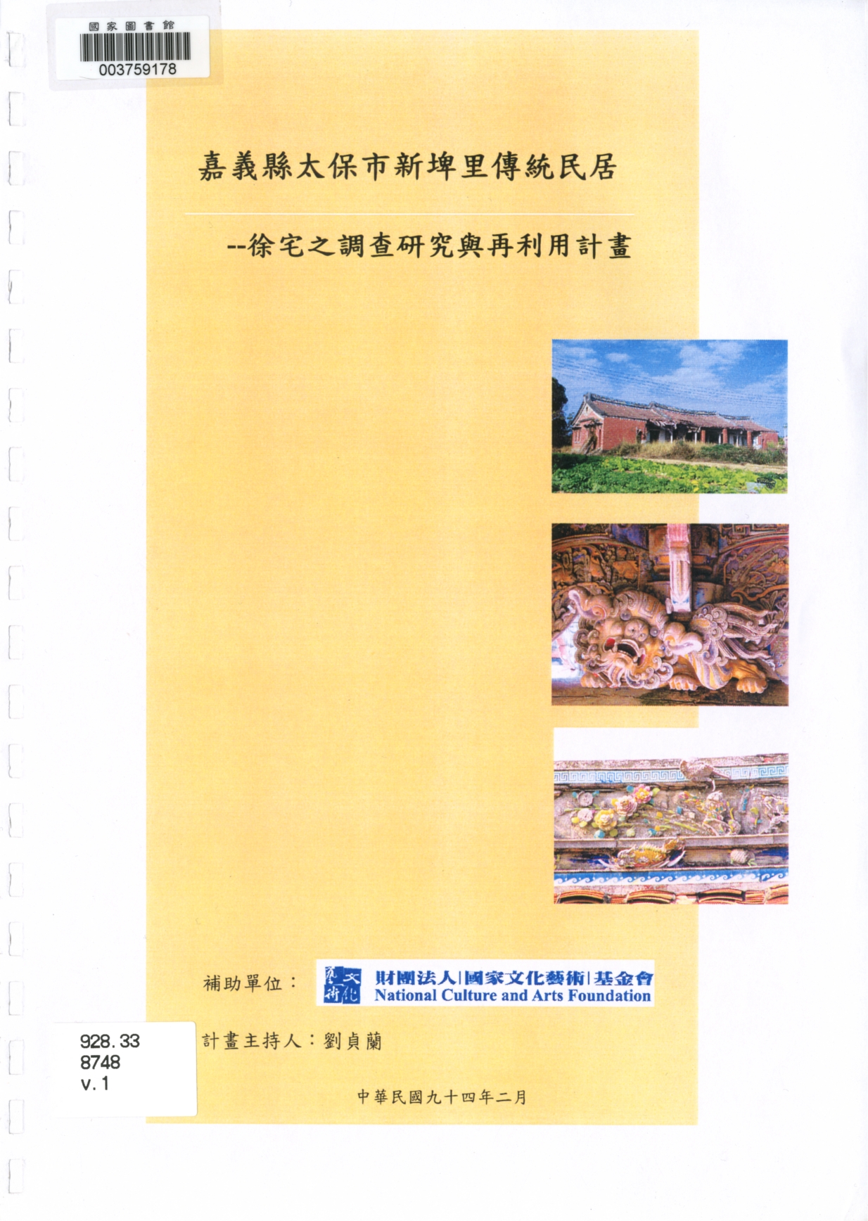 計畫主持(2005-02)。[照片5-1.5 徐宅檐廊明間右向步架]。《數位典藏與數位學習聯合目錄》。http://catalog.digitalarchives.tw/item/00/5c/cd/e0.html(2025/01/17瀏覽)。