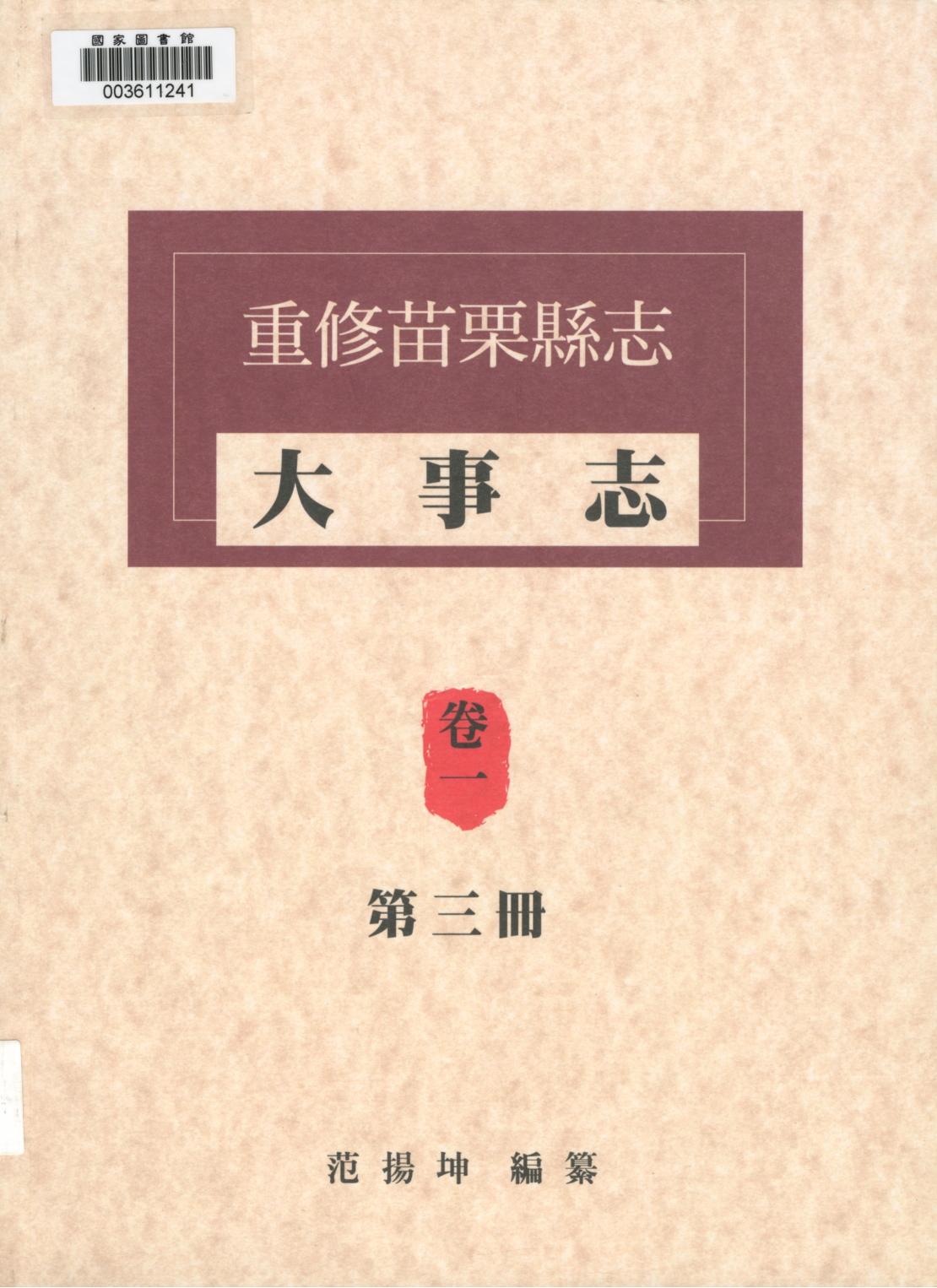 出自:重修苗栗縣志:卷一‧大事志(第三冊)