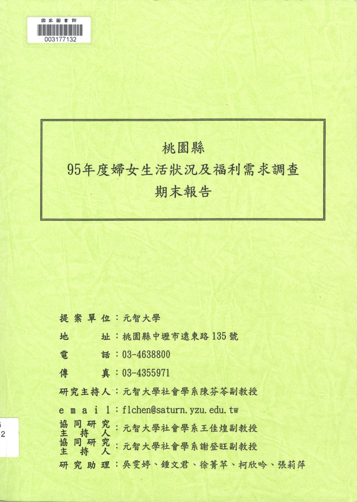 名稱:陳芬苓 著作方式:研究主持;名稱:王佳煌、謝登旺 著作方式:協同研究主持