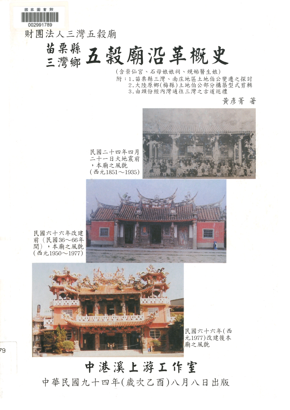 著(2005-08)。[壹、人、事、時、物之概略及圖影剪輯]。《數位典藏與數位學習聯合目錄》。http://catalog.digitalarchives.tw/item/00/5d/b9/2b.html(2025/01/18瀏覽)。