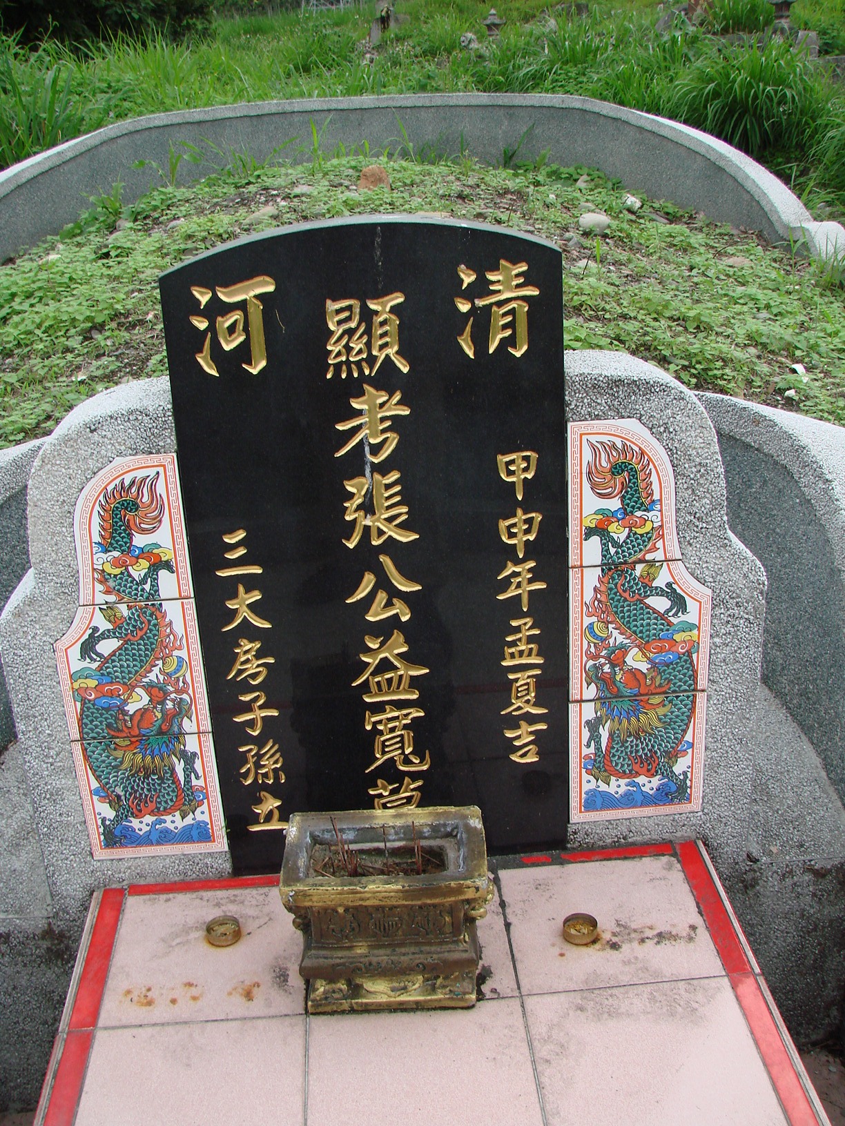 The tomb is located in Taiwan, Taidongxian, Guanshanzhen, Guanshan. The characters of this tombstone are carved, and they are gold, . The tombstone is top round. The elements on this tombstone are (person)(location)(date)(erected by). The symmetric top-part of the tombstone is the focus. The focused element here is (location). ; 這是一個在台灣,台東縣,關山鎮,關山發現的墳墓。這個墓碑上的文字都是直接鑿刻上去的, 而後塗上金色。這個墓碑的上方是圓弧形。這個墓碑上所紀載的訊息包括「人」、「地域」、「日期」、「立」。墓碑上方左右對稱的部份是訊息的「焦點」。這個墓碑的焦點是「地域」。