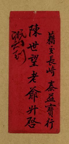 範圍與內容:本件收錄書信1封,發信時間為1908年1月,發信人陳德輝、葉遠昌;書信內容為賀柬。