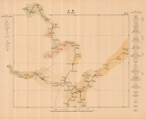 實業部地質調查所/北平研究院地質學研究所(年代不詳)。[地圖名稱:第二十幅 雅安]。《數位典藏與數位學習聯合目錄》。http://catalog.digitalarchives.tw/item/00/81/4c/4e.html(2020/07/07瀏覽)。