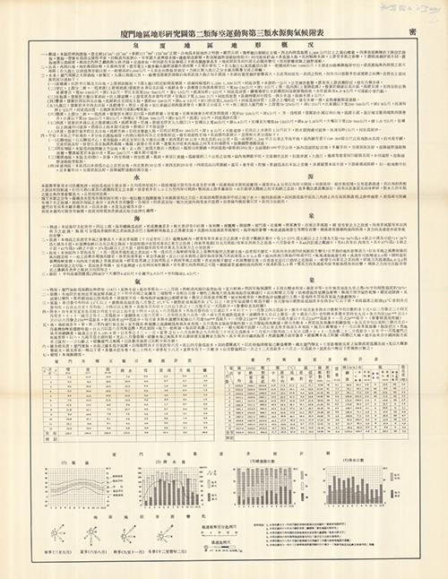地圖名稱:廈門地區地形研究圖第二類海空運動與第三類水源與氣候附表