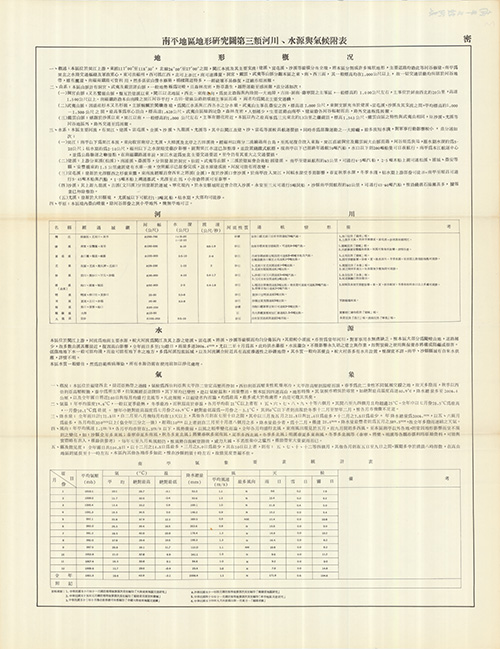 地圖名稱:南平地區地形研究圖第三類河川、水源與氣候附表