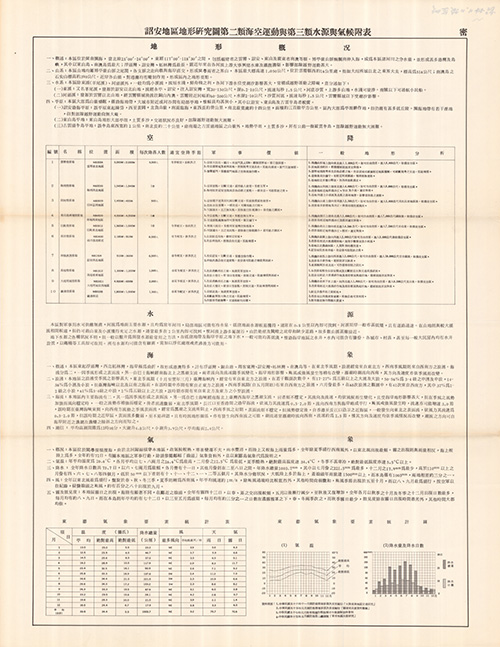 地圖名稱:詔安地區地形研究圖第二類海空運動與第三類水源與氣候附表