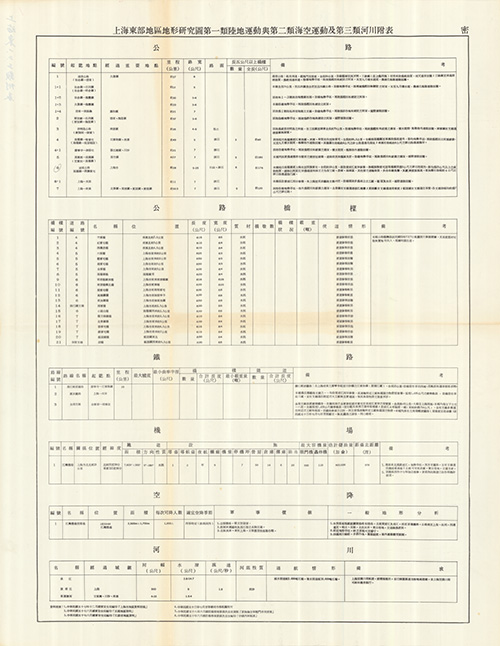 地圖名稱:上海東部地區地形研究圖第一類陸地運動與第二類海空運動及第三類河川附表