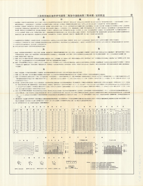 地圖名稱:上海東部地區地形研究圖第二類海空運動與第三類水源、氣候附表