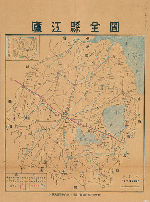 廬江縣縣政府統計室(年代不詳)。[地圖名稱:廬江縣全圖]。《數位典藏與數位學習聯合目錄》。http://catalog.digitalarchives.tw/item/00/81/4f/b2.html(2020/07/07瀏覽)。