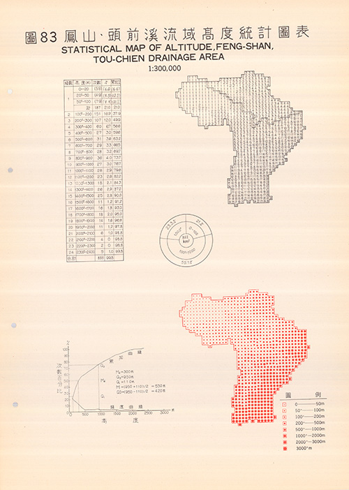 臺灣師範大學發行 聯勤測量署印(年代不詳)。[地圖名稱:圖83. 鳳山、頭前溪流域高度統計圖表]。《數位典藏與數位學習聯合目錄》。http://catalog.digitalarchives.tw/item/00/81/51/fa.html(2020/07/07瀏覽)。