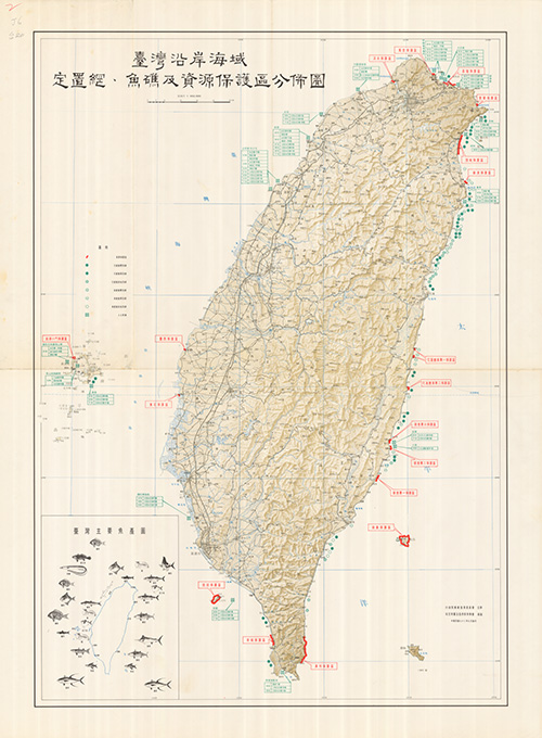 行政院農委會主辦 航測及遙感探測學會編(年代不詳)。[地圖名稱:臺灣沿岸海域定置網、魚礁及資源保護區分佈圖]。《數位典藏與數位學習聯合目錄》。http://catalog.digitalarchives.tw/item/00/81/52/5d.html(2020/07/07瀏覽)。