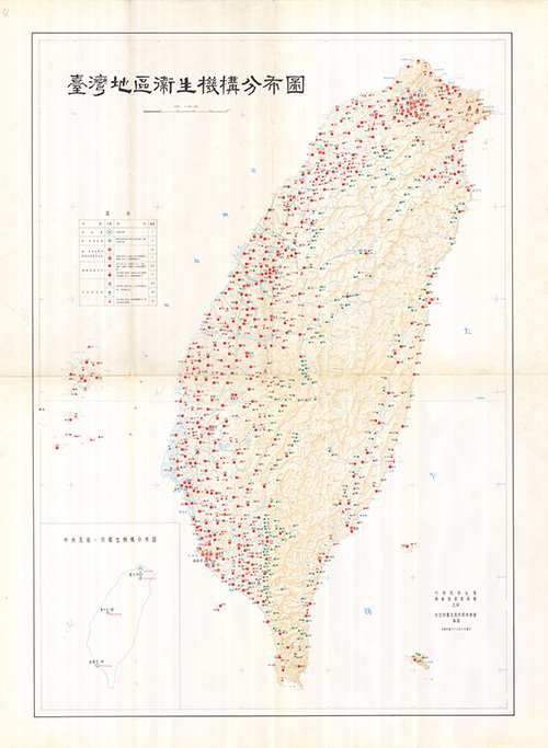 行政院農委會主辦 航測及遙感探測學會編(年代不詳)。[地圖名稱:臺灣地區衛生機構分布圖]。《數位典藏與數位學習聯合目錄》。http://catalog.digitalarchives.tw/item/00/81/52/5f.html(2020/07/07瀏覽)。