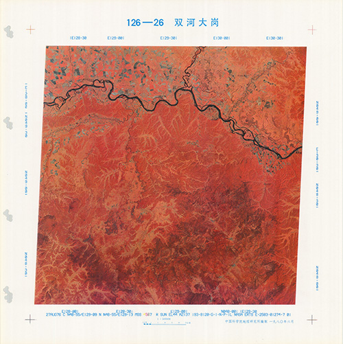 中國科學院地理研究院編製科學出版社發行(年代不詳)。[地圖名稱:126-26雙河大崗]。《數位典藏與數位學習聯合目錄》。http://catalog.digitalarchives.tw/item/00/81/54/7f.html(2020/07/07瀏覽)。