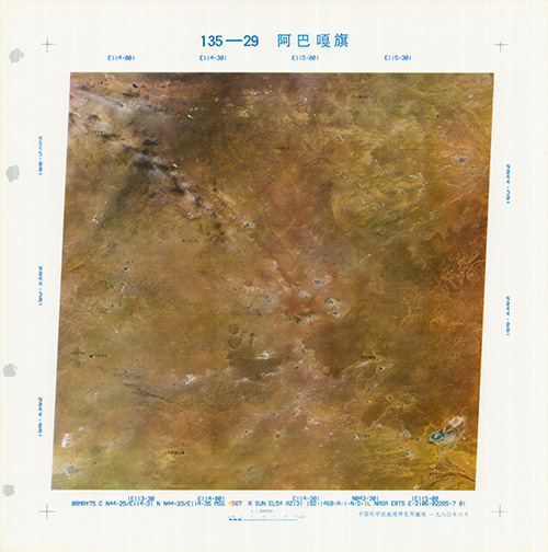 中國科學院地理研究院編製科學出版社發行(年代不詳)。[地圖名稱:135-29阿巴嘎旗]。《數位典藏與數位學習聯合目錄》。http://catalog.digitalarchives.tw/item/00/81/55/36.html(2020/07/07瀏覽)。