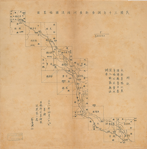 地圖名稱:民國三十年調查新黃河經流圖幅略圖