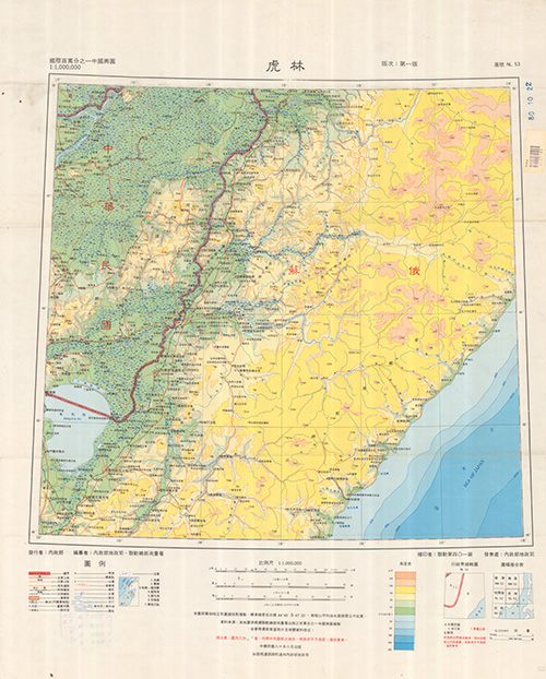 內政部地政司 聯勤總部測量署(年代不詳)。[地圖名稱:虎林 NL53]。《數位典藏與數位學習聯合目錄》。http://catalog.digitalarchives.tw/item/00/81/57/ef.html(2020/07/07瀏覽)。