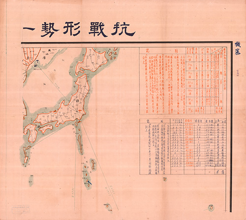 軍令部第四廳(年代不詳)。[地圖名稱:抗戰形勢一覽圖]。《數位典藏與數位學習聯合目錄》。http://catalog.digitalarchives.tw/item/00/81/5a/23.html(2020/07/07瀏覽)。