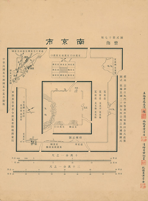 軍事委員會軍令部(年代不詳)。[地圖名稱:圖式第17版_整飾_南京市]。《數位典藏與數位學習聯合目錄》。http://catalog.digitalarchives.tw/item/00/81/61/19.html(2020/07/07瀏覽)。