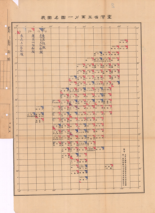 地圖名稱:臺灣省五萬分一圖名圖表