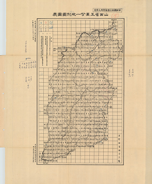 聯勤測量製圖廠(年代不詳)。[地圖名稱:(原版)山西省五萬分一地形圖圖表]。《數位典藏與數位學習聯合目錄》。http://catalog.digitalarchives.tw/item/00/81/61/d3.html(2020/07/07瀏覽)。