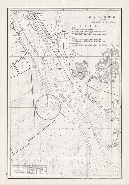 中共海軍司令部航海保證部(年代不詳)。[地圖名稱:磨刀門及附近]。《數位典藏與數位學習聯合目錄》。http://catalog.digitalarchives.tw/item/00/81/62/82.html(2020/07/07瀏覽)。
